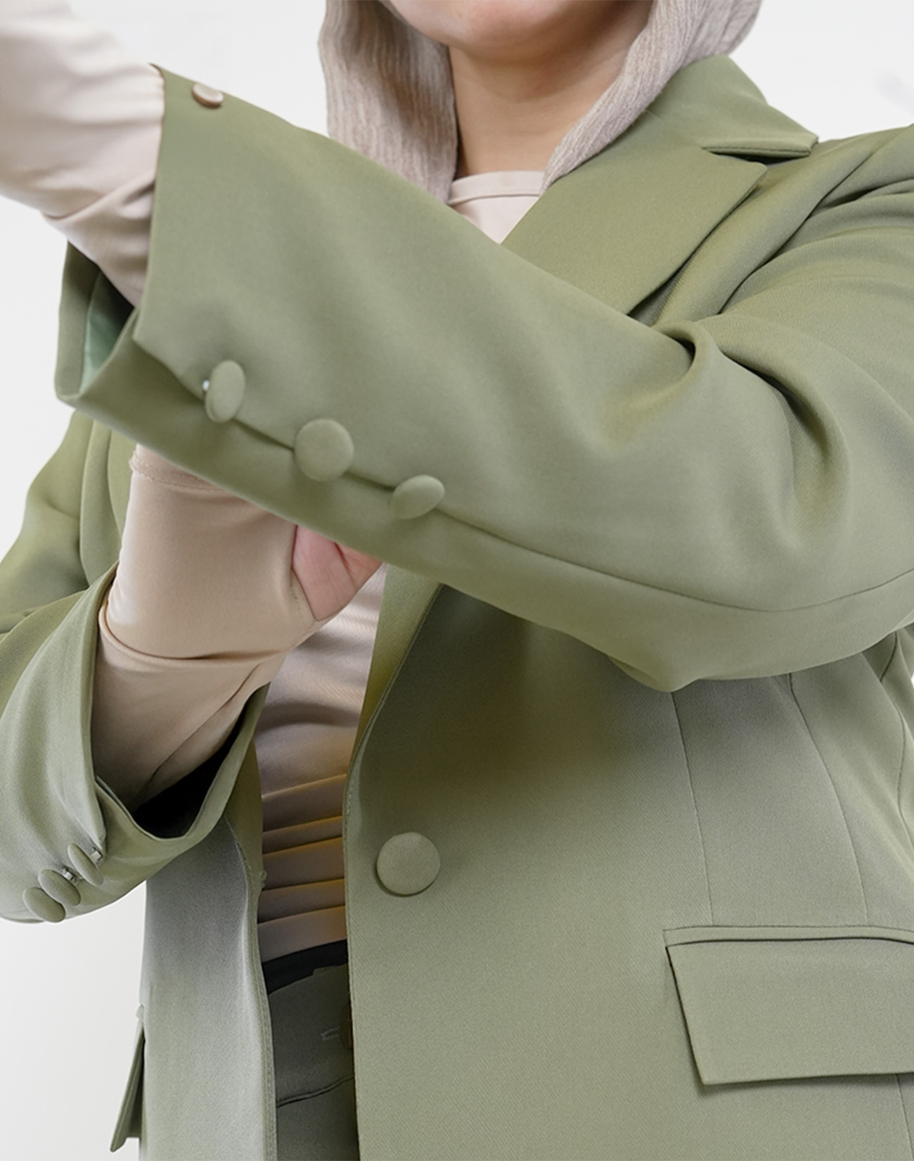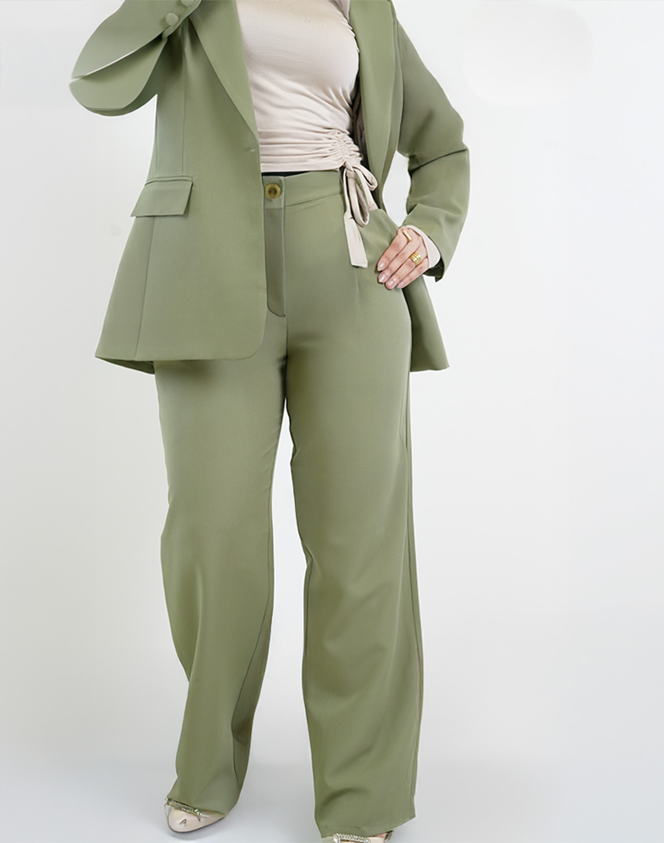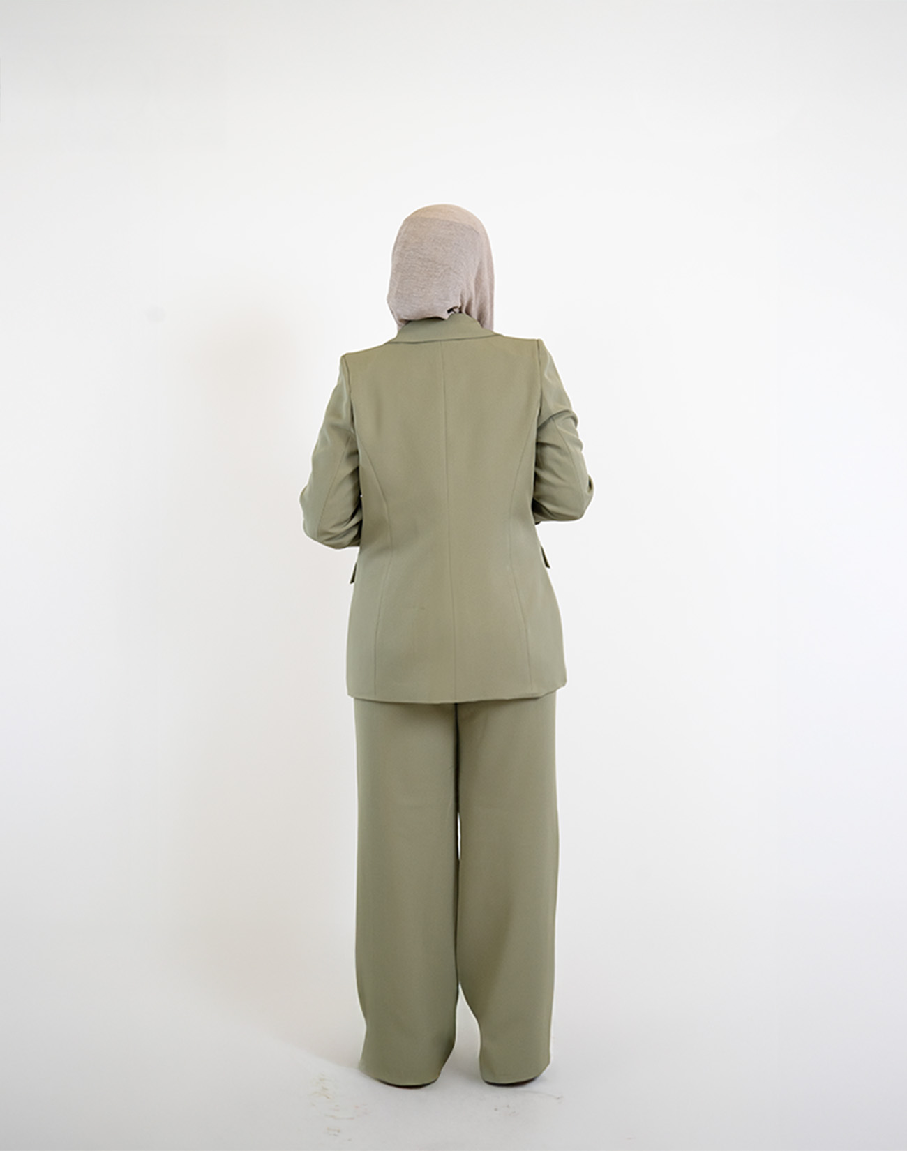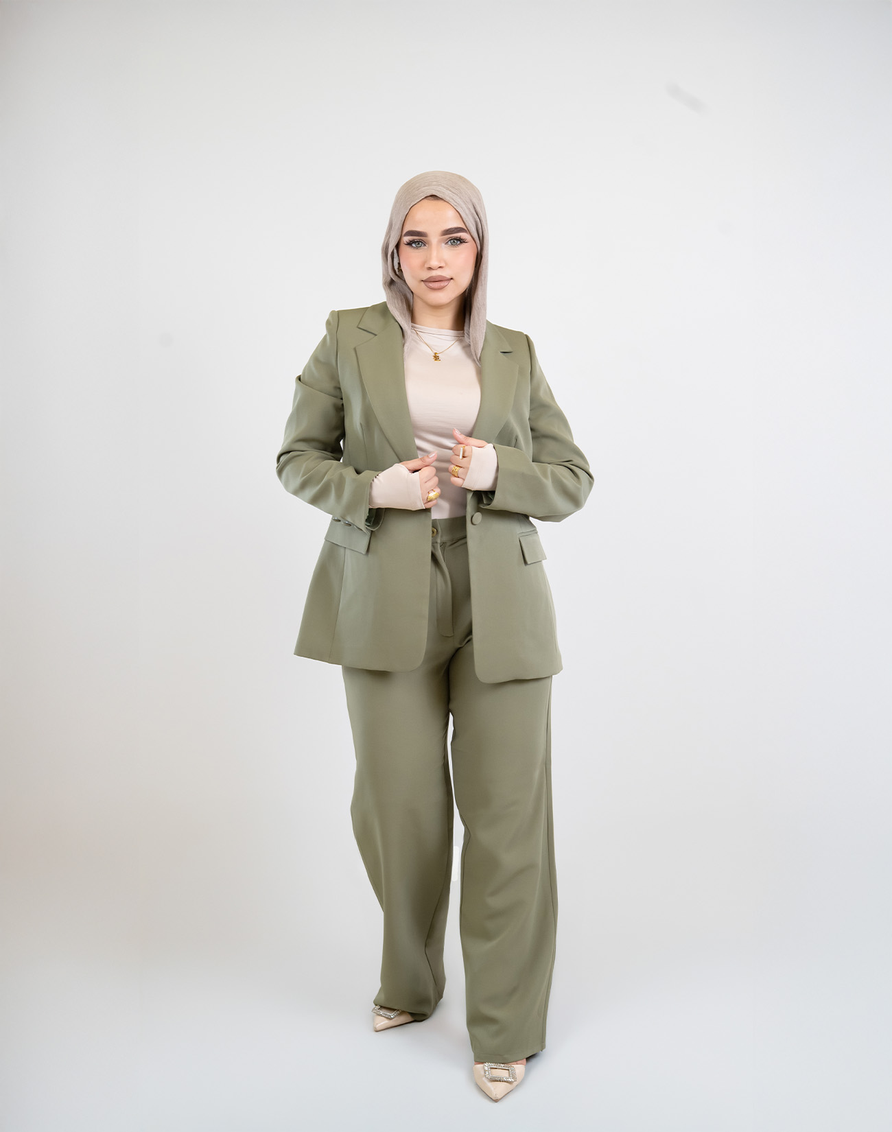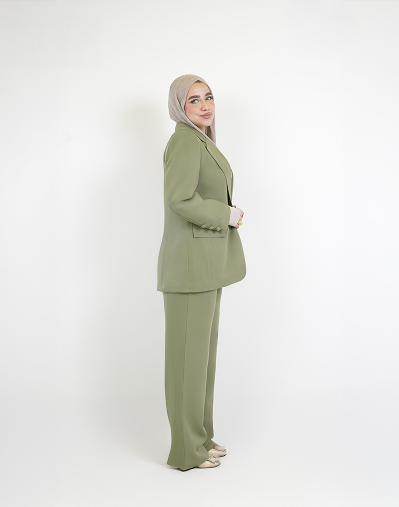 Two-piece formal suit set featuring a blazer and matching trousers. Designed for a polished, modest-friendly look for work and occasions.
