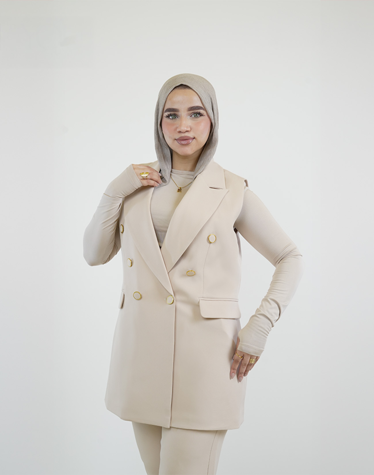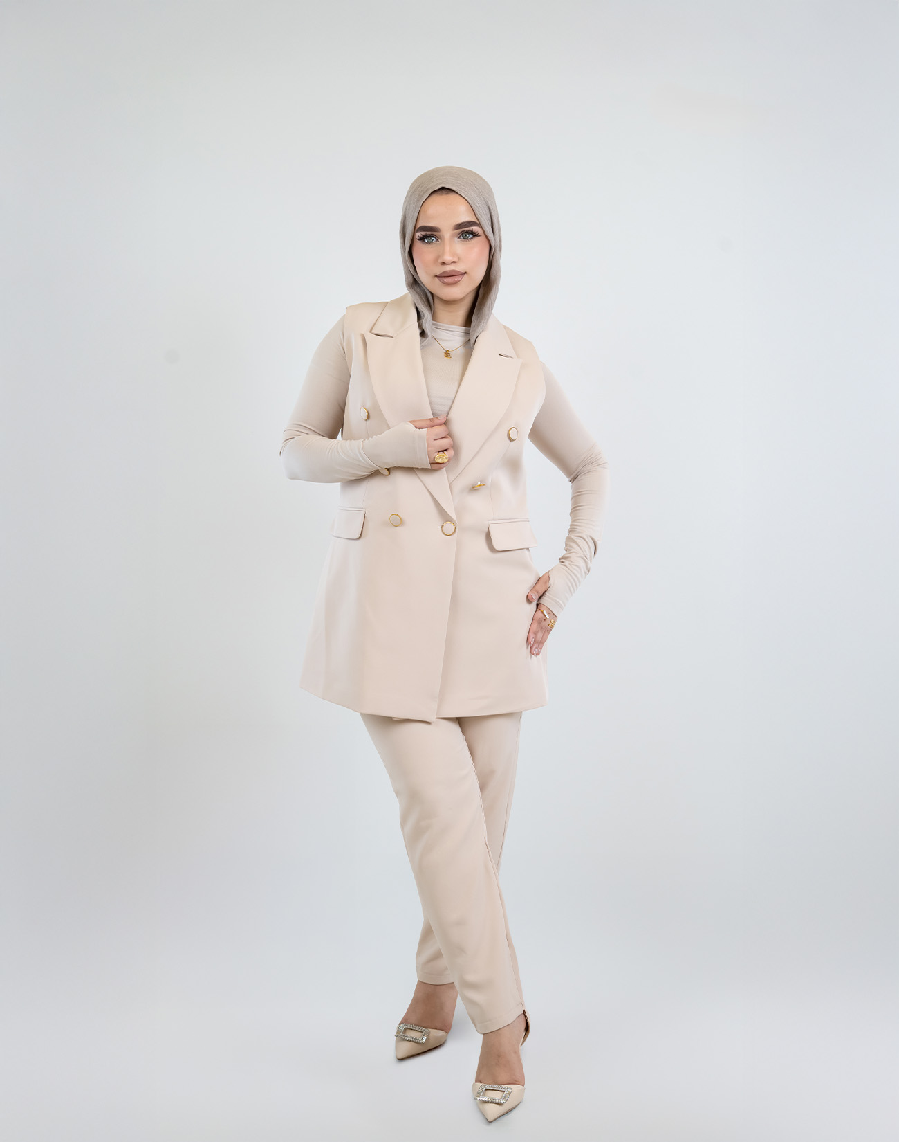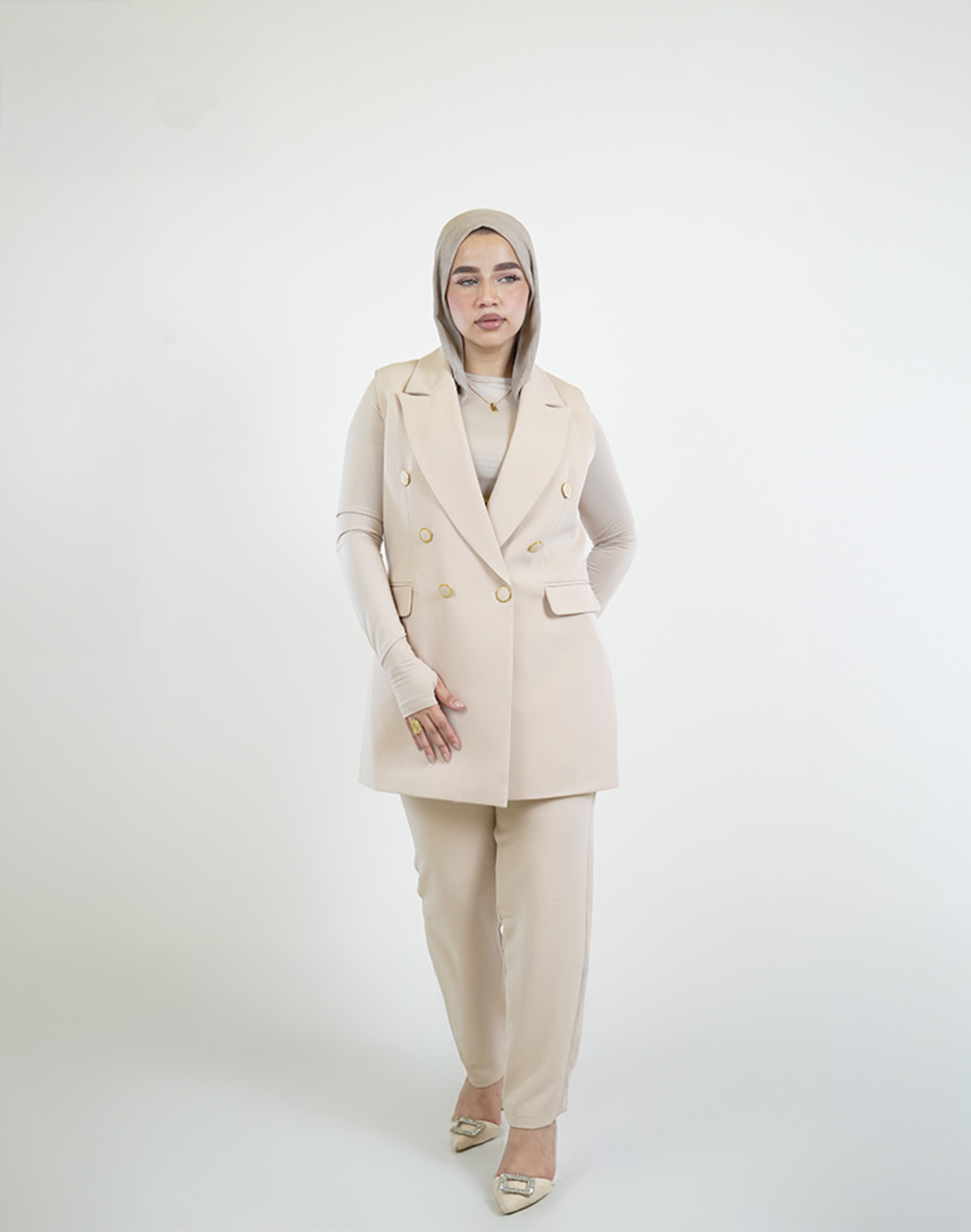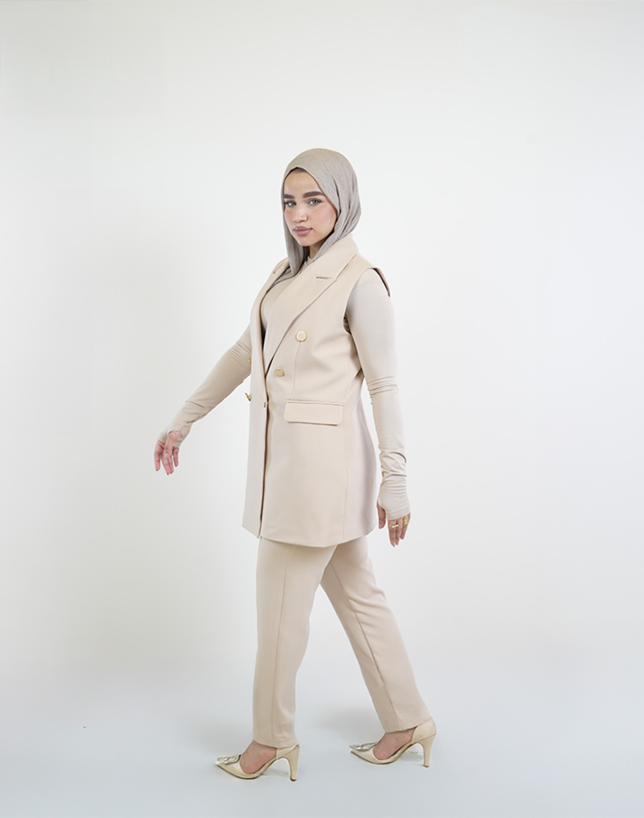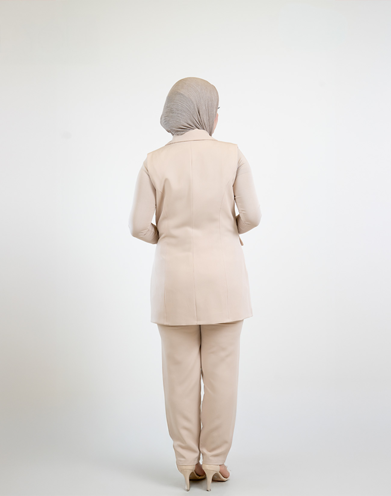 Two-piece formal suit set featuring a sleeveless longline vest and matching trousers. Layer-friendly, modest-friendly and perfect for office looks.
