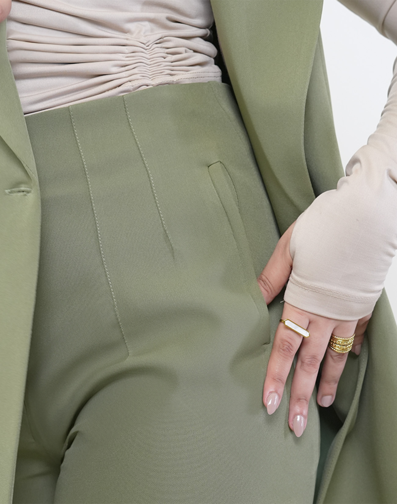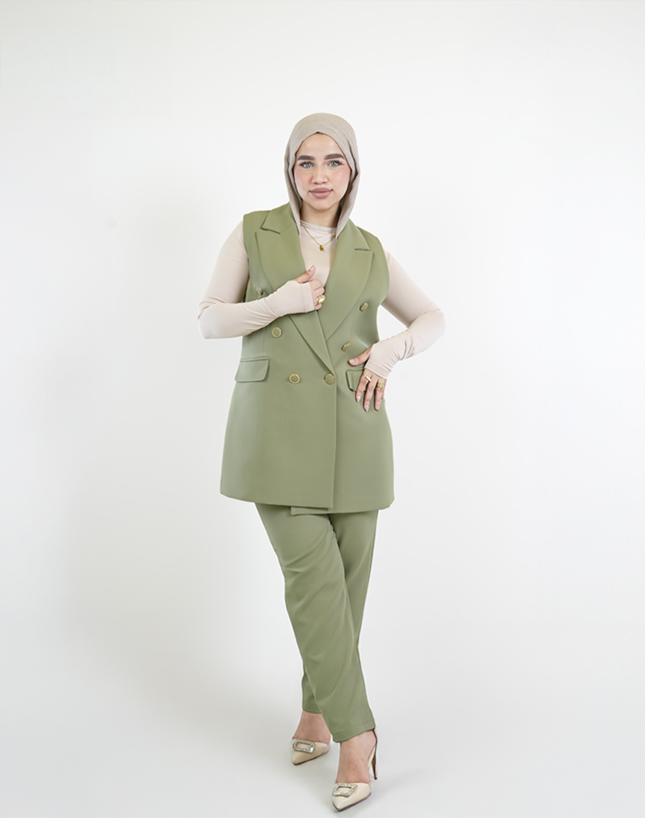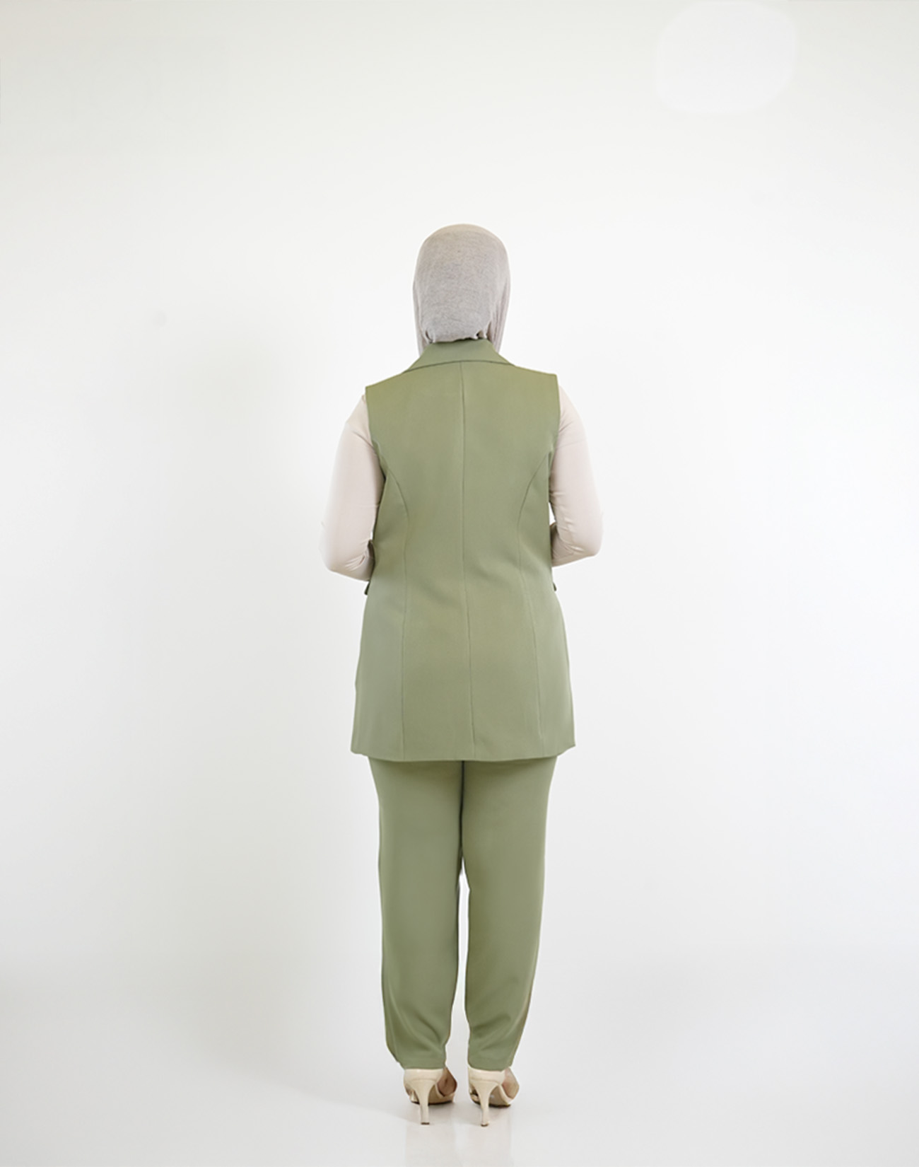 Two-piece formal suit set featuring a sleeveless longline vest and matching trousers. Layer-friendly, modest-friendly and perfect for office looks.
