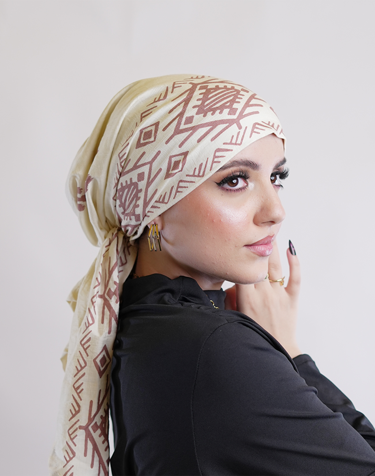 Spanish Turban Printed Linen – lightweight & elegant. A breathable linen turban perfect for women’s modest fashion & daily comfort