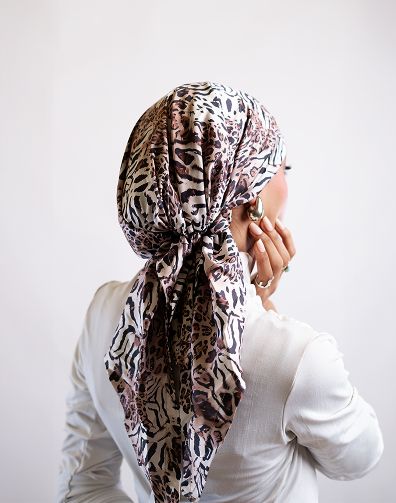Be the first to review “Spanish Turban Printed Stan -Bright grey X timberwolf”